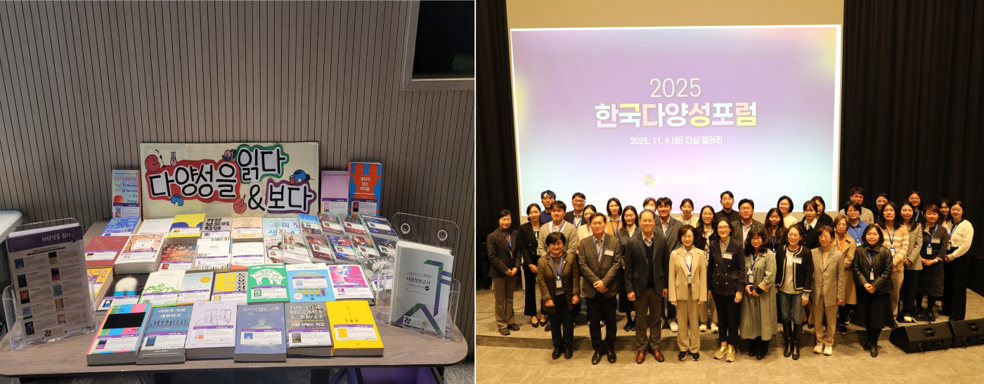 2025년 11월 4일 오후 2시 30분부터 강남구 자곡동에 위치한 포스코 더샵캘러리에서 한국다양성협의체가 주최하는 제2회 한국다양성포럼이 개최되었다. 포럼에는 현재 17개 회원사 관계자 외에 다양성과 포용성 증진에 관심을 가지고 있는 여러 비회원사가 참석하여 총 70여명이 모여 2시간 30분 동안 <포용이 좋은 일을 넘어 성과로 이어질 수 있을까?>를 주제로 발표와 토론이 이루어졌다. 서울대 다양성위원회는 지난 4월에 개최한 제7회 다양성 도서/영화 추천사 공모전에서 선정한 도서30선, 영화 10선을 행사장 입구에 전시하고, 도서/영화 추천목록과 <다양성보고서 2024> 요약본을 참가자들께 나누어 주었다.