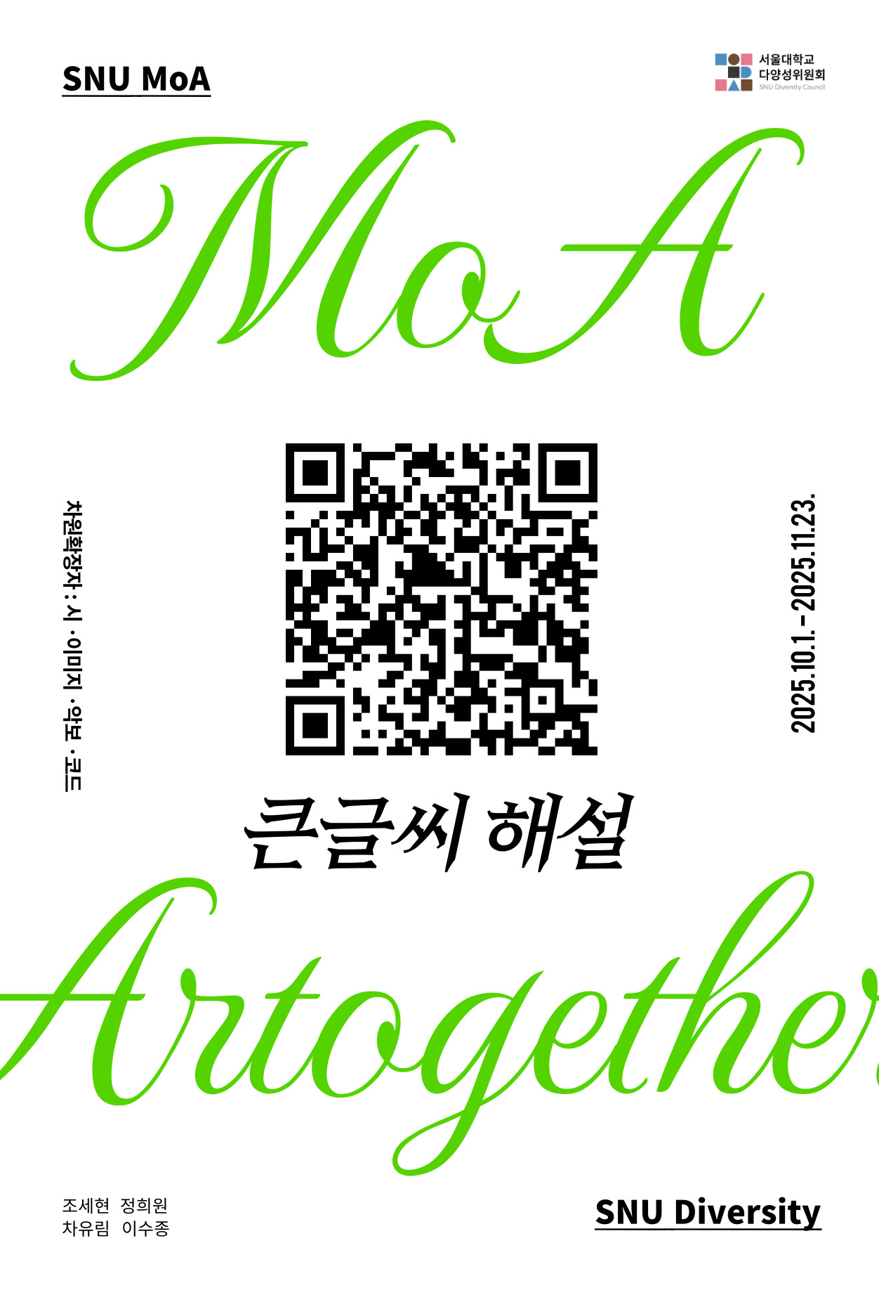 서울대학교 다양성위원회 Artogether팀은 미술관과 협업하여 이번 〈차원확장자 : 시 · 이미지 · 악보 · 코드〉 展의 '저시력자를 위한 큰글씨 및 전맹을 위한 오디오 대체텍스트 해설' 웹을 다음과 같이 개시하였습니다.